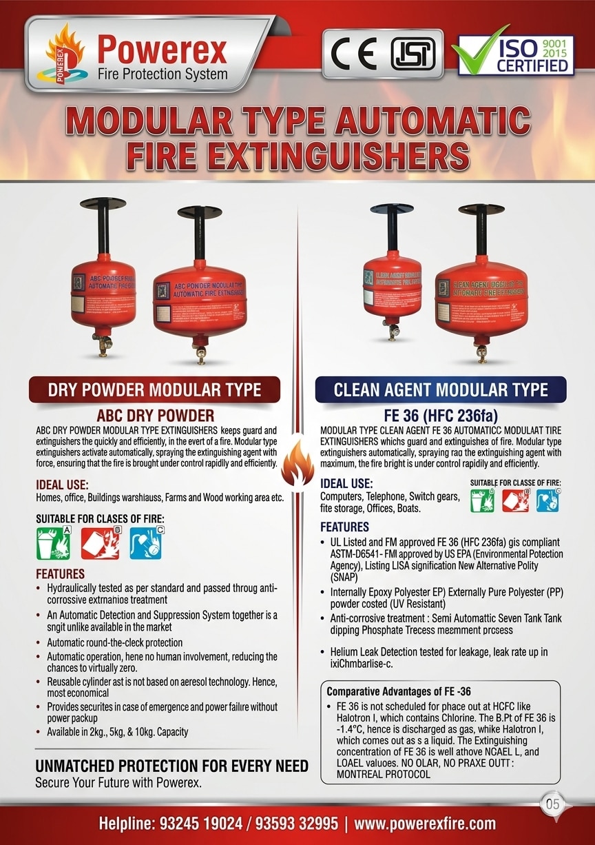 Modular fire extinguishers are automatic ceiling mounted fire suppression systems that activate without human intervention, provide rapid and reliable fire protection in critical or unmanned area.